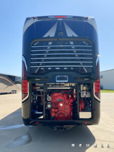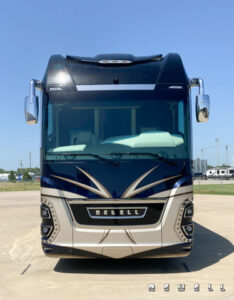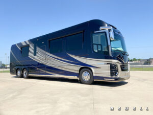 Engine Cummins X15 605-bhp 1,950-lb./ft. torqueTransmission Allison HD4000MH 6-speed automatic Axle ratio 4.18 Tires Drive axle: Michelin XZA-2 315/80R 22.5 Load Range L Front axle and tag axle: Michelin XZA-365/70R22.5 Load Range L Brakes Air disc with 6-channel ABS/ATC Suspension ZF active suspension system Steer axle: ZF independent Drive axle: ZF wide base Tag axle: ZF active steer Alternator 12-volt high amp alternator Batteries House: Six type-8D AGM sealed with PulseTech automatic equalization Chassis: Three Group 31 AGM sealed with PulseTech automatic equalizatior Steering ZF with variable ratio power steering Easi-SteerTM electronic steering assist Inverter Dual Outback 2800-watt pure sine wave Electrical service 90-amp with SurgeGuard automatic protection Generator 20 kilowatt- Tier 4 compliant Exterior width 102 inches Interior headroom 89 inches Exterior height 13 ft. 5 in. (with in-motion satellite) Gross vehicle-weight rating 63,600 lbs. Gross axle-weight rating, front 20,000 lbs. Gross axle-weight rating, drive 28,600 lbs. Gross axle-weight rating, tag 16,000 lbs. Fresh-water capacity 143 gallons Holding-tank capacity 143 gallons Fuel capacity 200 gallons DEF (Diesel Exhaust Fluid) capacity 21 gallons
